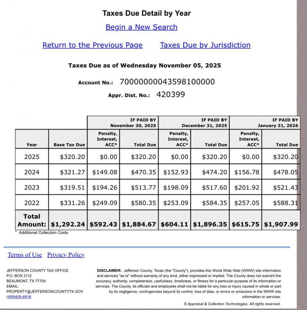 Now, of course, it is not that much in today’s standards. Around $1,900.00 in back taxes. But it is the point of the matter. Here is the layout since her tax account has gone online.